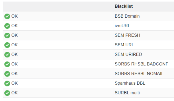 1、查看是否因为发垃圾邮件等原因被域名机构拉黑:方法很简单,把域名放到https://mxtoolbox.com/blacklists.aspx 检测一下就好。从检测结果看,一切OK,没有被域名机构屏蔽(如果有不OK的,就不建议使用了)